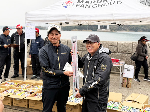 事前情報では「下津井は小型の真鯛が多く苦戦しそう」との声もありましたが、参加者の皆様は得意の配合餌や付けエサを駆使し、40センチオーバーの良型チヌを検量に出されるなど見事な釣果を上げられました。