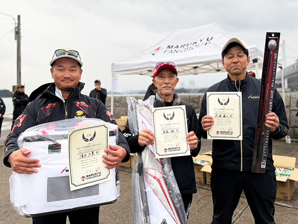 優勝は3枚重量3,440gの高森さんで、練り餌を中層で食わせる戦略が功を奏しました。準優勝は清水さん(2,740g)、第3位は内海さん(3,280g)、第4位は石橋さん(2,620g)で、順位は船の横取り方式で決定しました。また、第9位にはマルキユー賞として新発売の「パワーエサバケットSP」が贈呈されました。