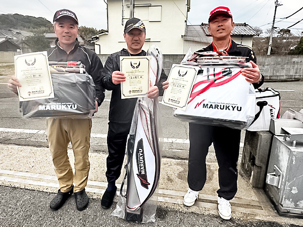 優勝は津島エリアにて早潮を攻略し、見事な良型をキャッチした塩田スタッフでした。おめでとうございます。